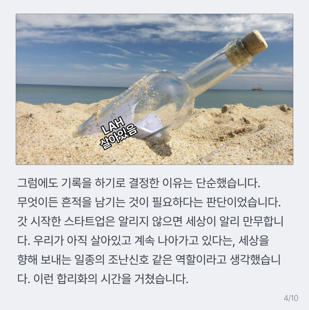 세상을 향해 보내는 일종의 조난신호 같은 역할이라고 생각했습니다.