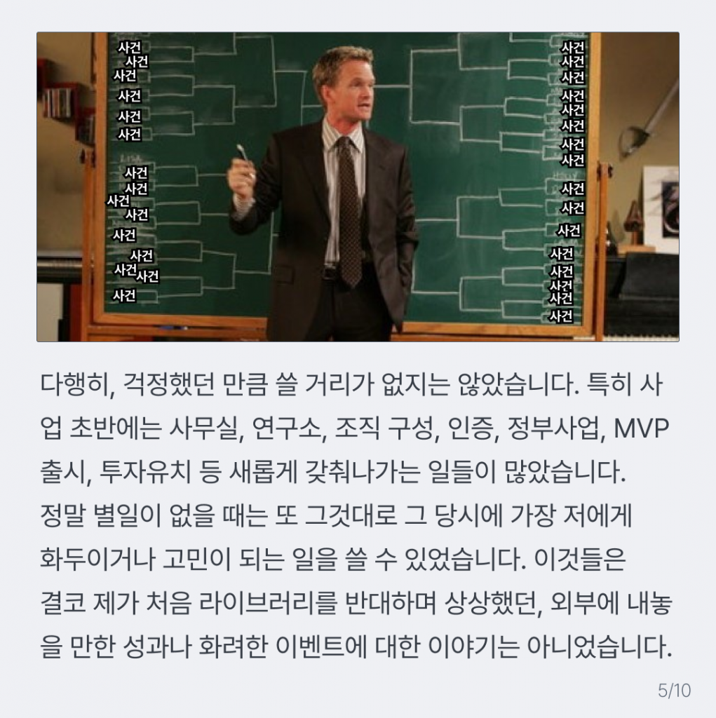 작은 스타트업이라도 5년이면 수많은 일과 판단이 쌓이는데,