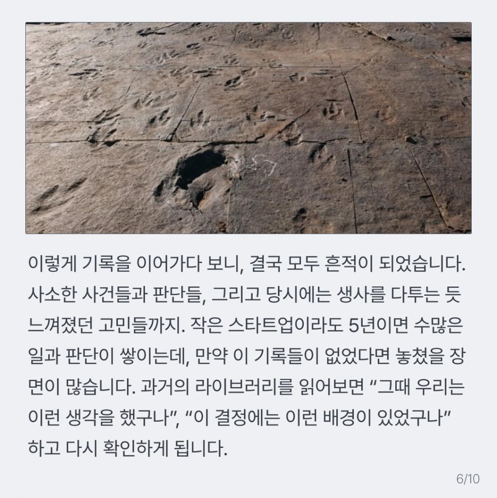 꾸준한 기록 자체가 회사의 리듬을 만들어줬습니다.