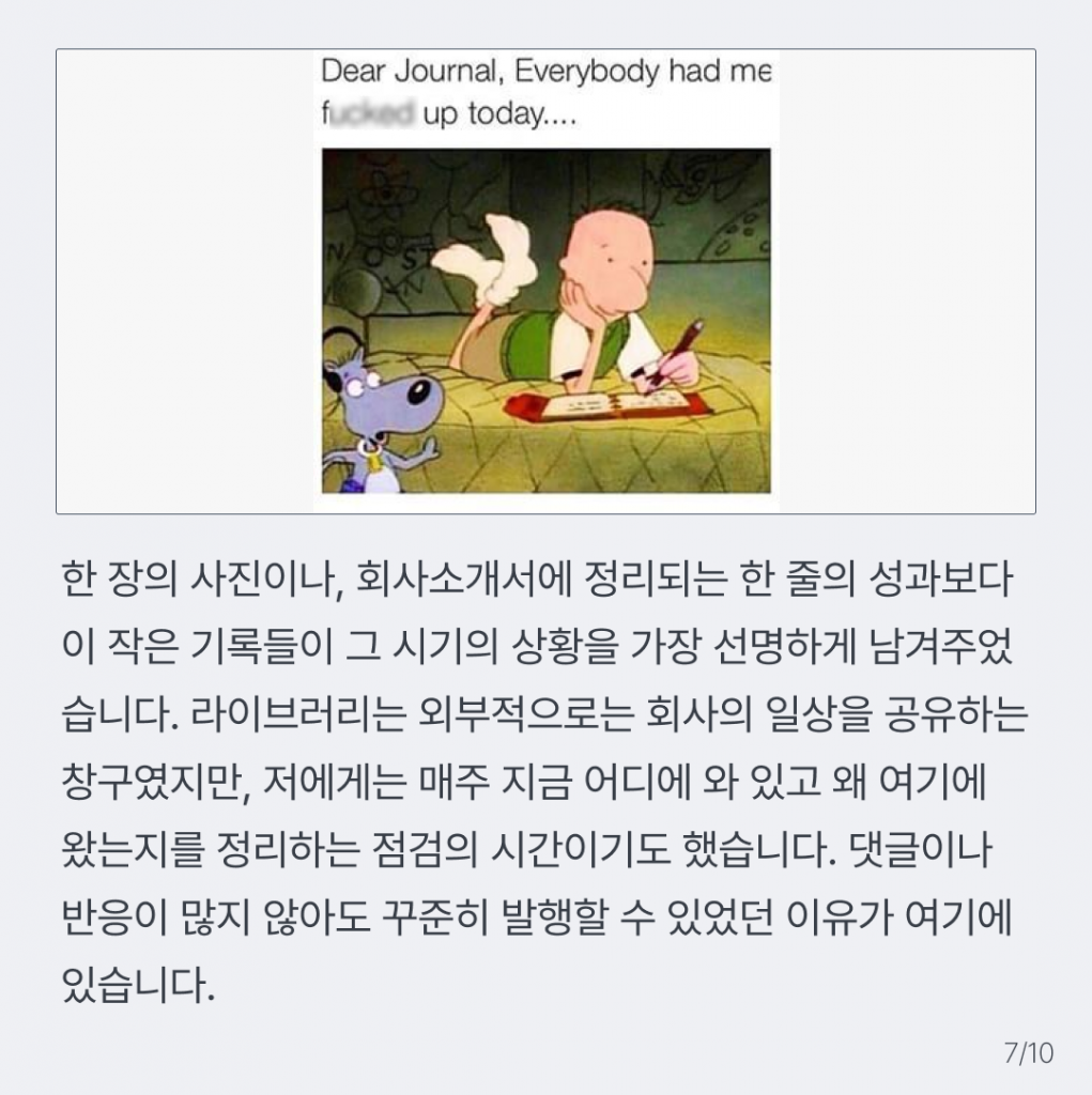 라이브러리는 외부적으로는 회사의 일상을 공유하는 창구였지만,