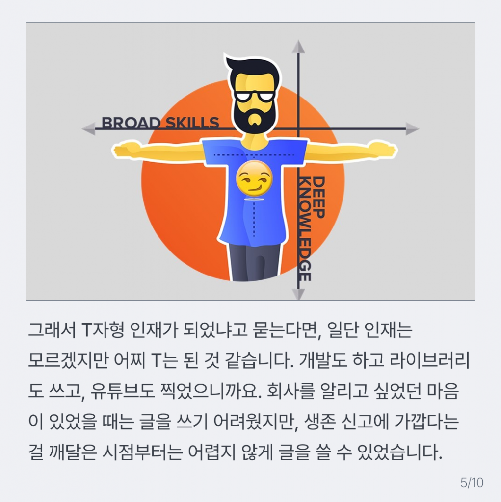 T자형 인재가 그런 의미는 아니겠지만(?) 글이나 영상으로 무언가를 생산할 수 있는 사람이 되고 싶었습니다.