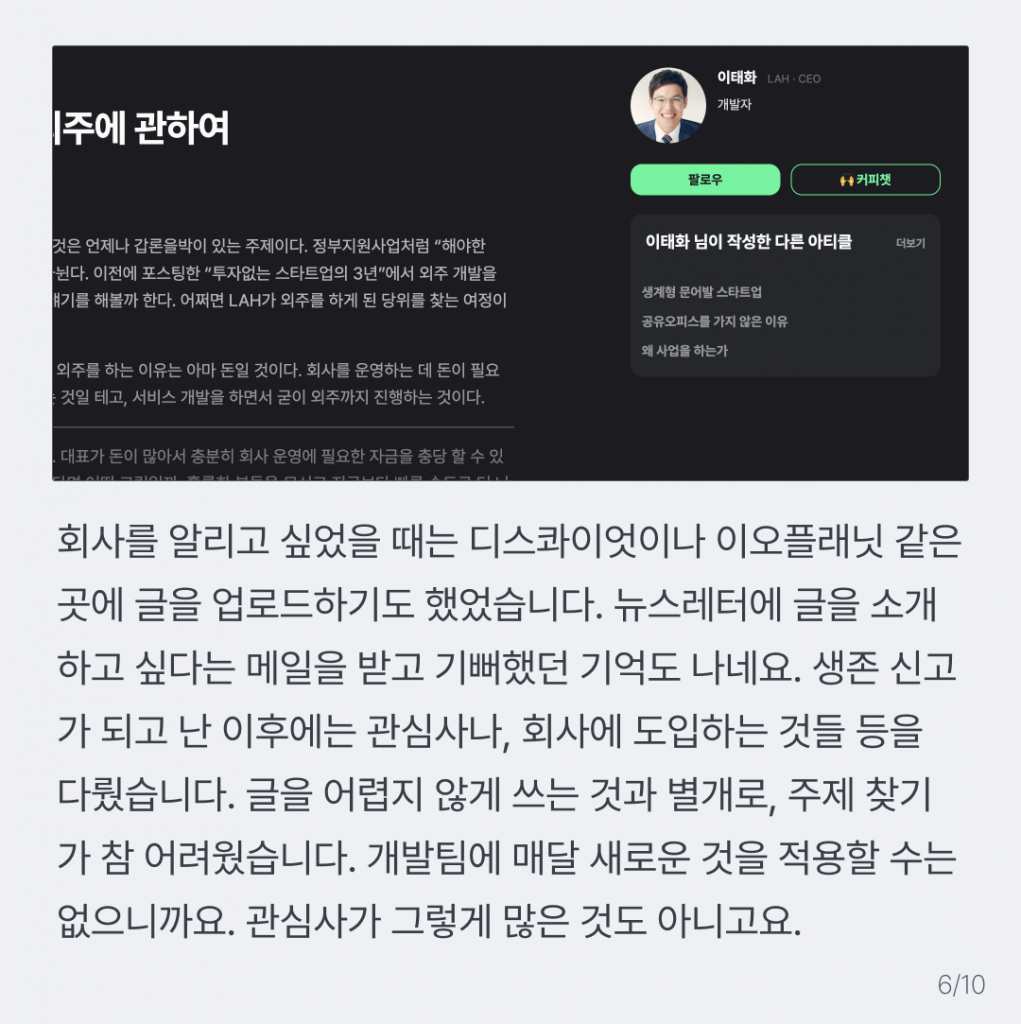회사를 알리고 싶었던 마음이 있었을 때는 글을 쓰기 어려웠지만,