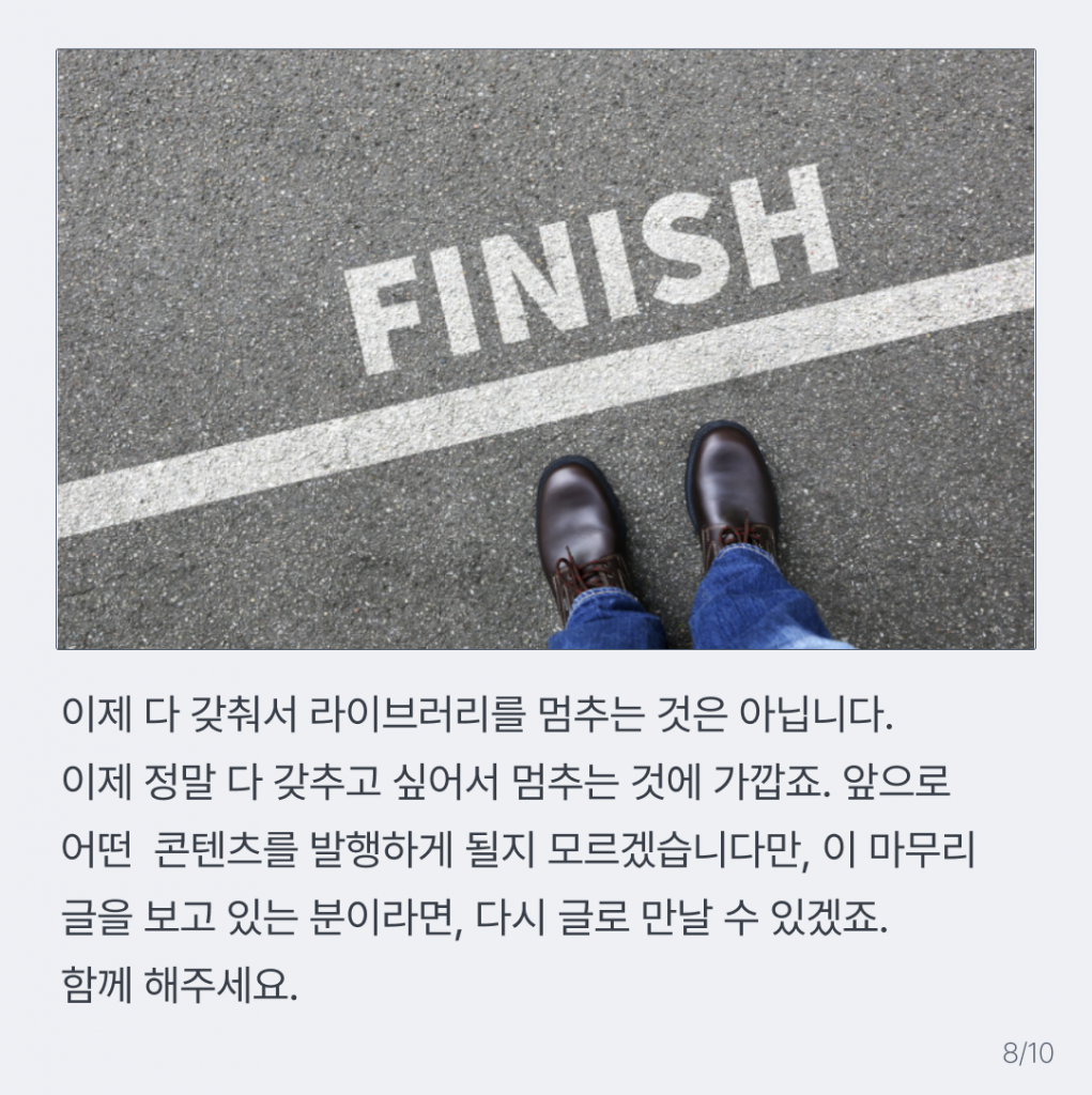 이 마무리 글을 보고 있는 분이라면, 다시 글로 만날 수 있겠죠.
